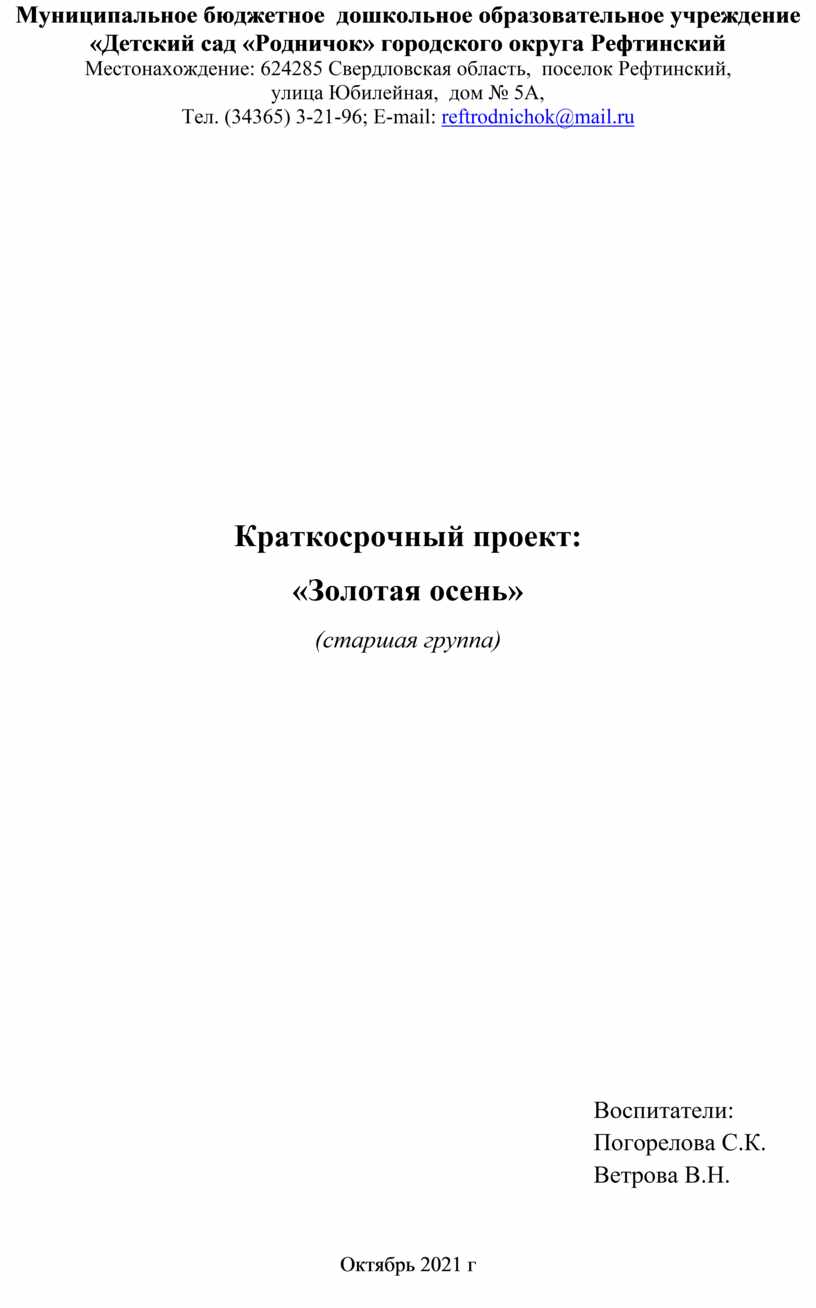 Тел. (34365) 3-21-96; E-mail: reftrodnichok@mail.ru