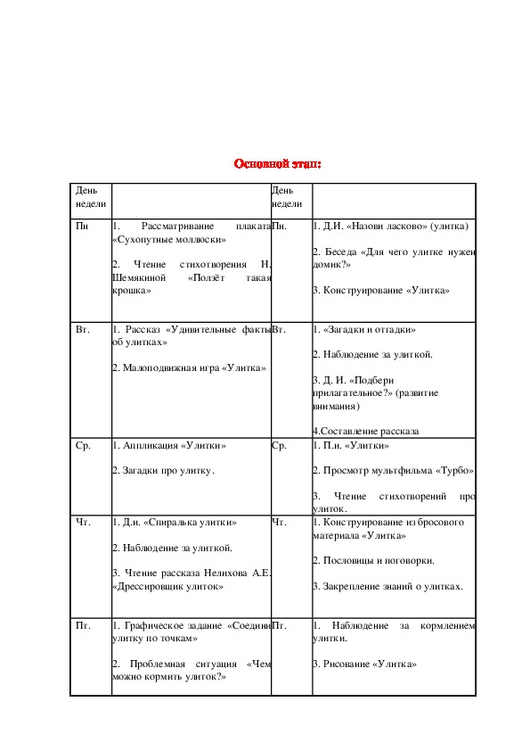 4. Расширить и закрепить представления о внешнем виде улитки;