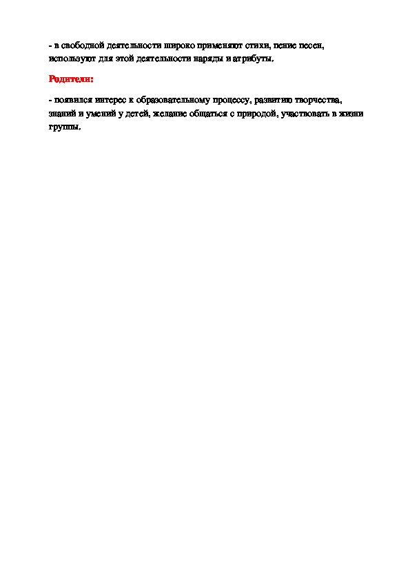 знаний и умений у детей, желание общаться с природой, участвовать в жизни