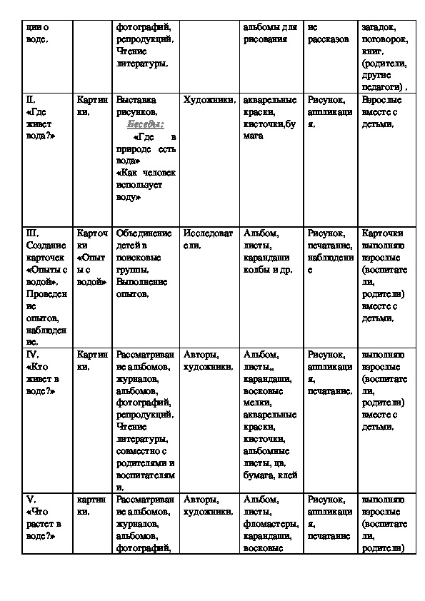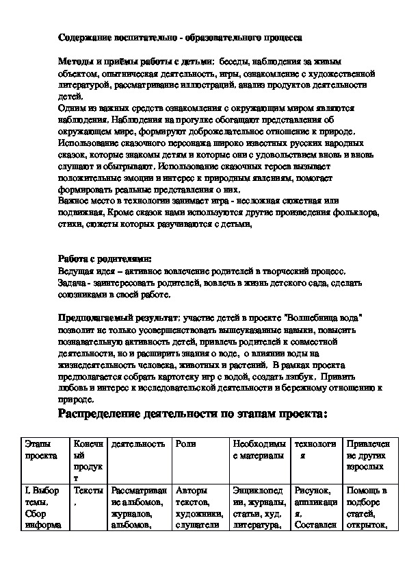 воде?Содержание воспитательно образовательного процесса
