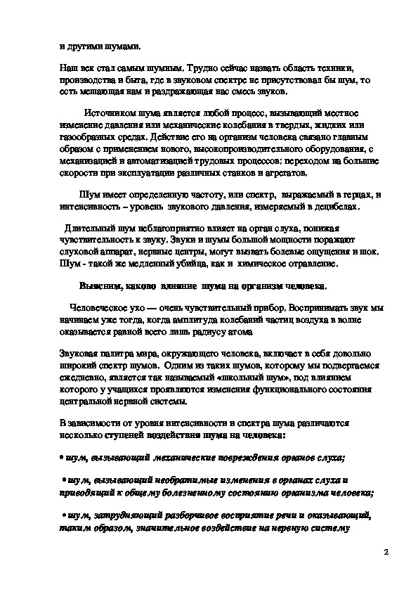 2. Влияние «школьного шума» на работоспособность обучающихся и