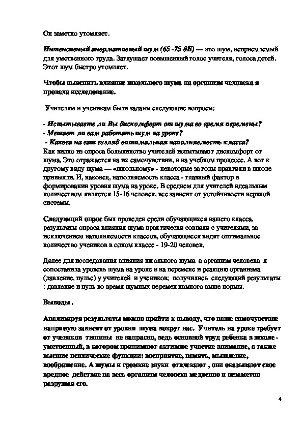 напрямую зависят от уровня шума вокруг нас. Учитель на уроке требует