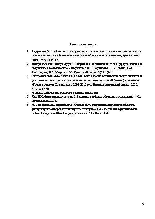 начальной школы» / Физическая культура: образование, воспитание, тренировка.