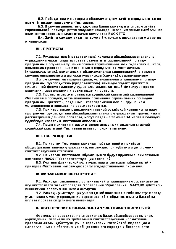 4.3. Судейство соревнований Фестиваля осуществляют главный судья
