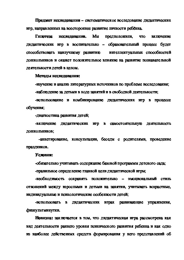 Новизна: заключается в том, что дидактическая игра рассмотрена как