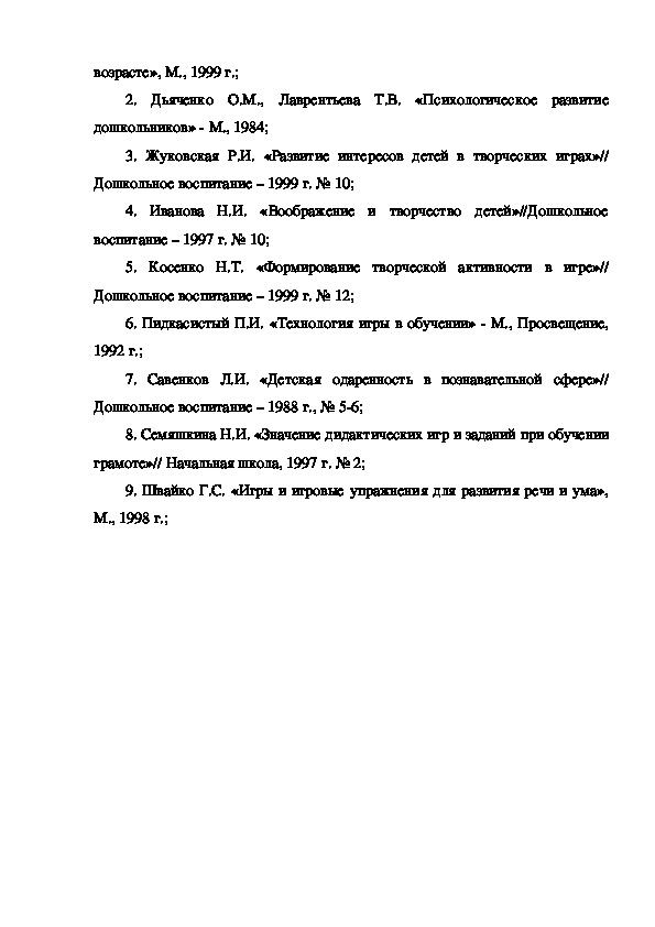 9. Швайко Г.С. «Игры и игровые упражнения для развития речи и ума»,