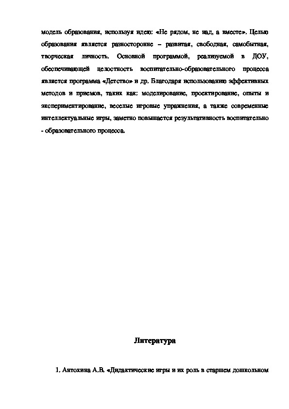 1. Антохина А.В. «Дидактические игры и их роль в старшем дошкольномвозрасте», М., 1999 г.;