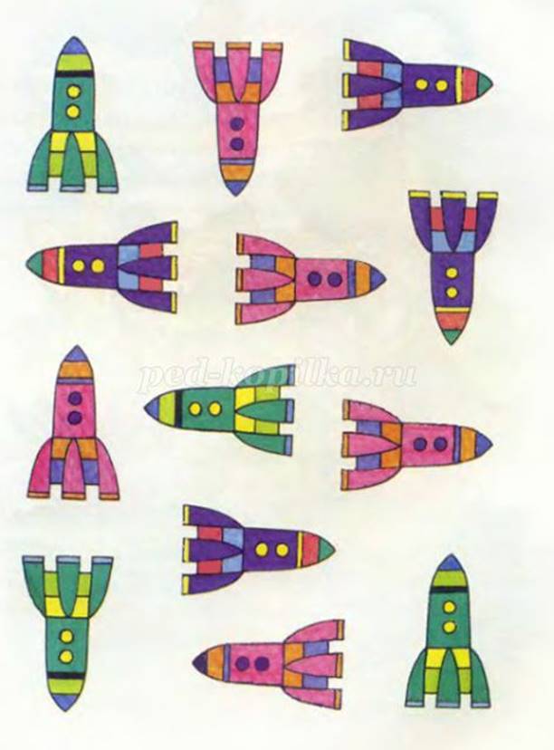 Сосчитай, сколько ракет летит направо, сколько налево, вверх и вниз.