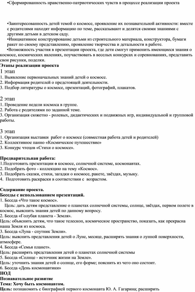 космоса; подвести к пониманию таких нравственных и волевых качеств, как