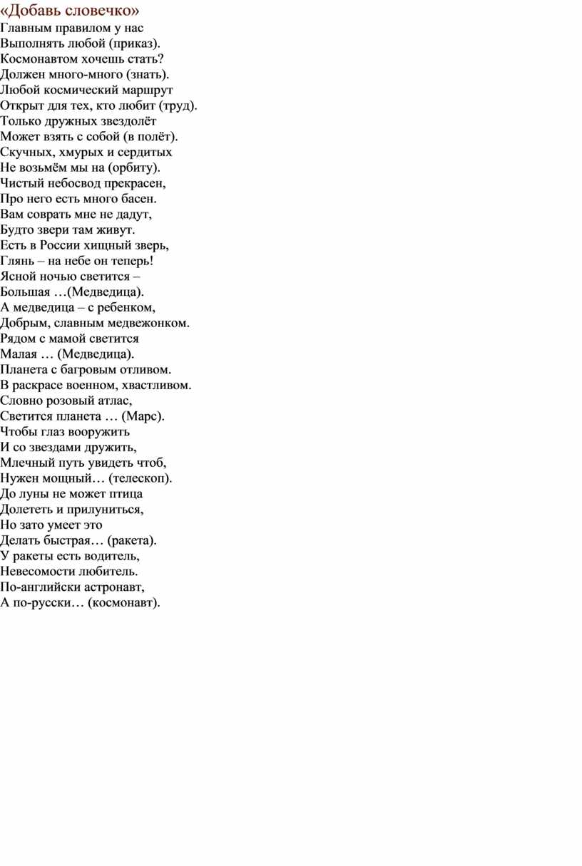 3. Подобрать сказки, стихи, загадки о космосе, ракете, звёздах, музыку.