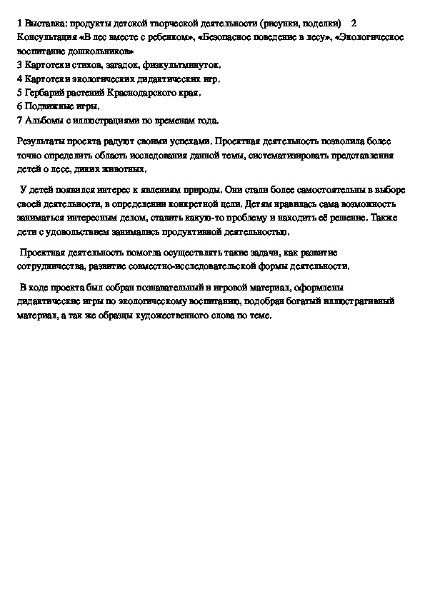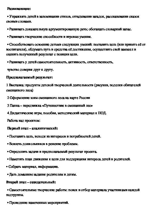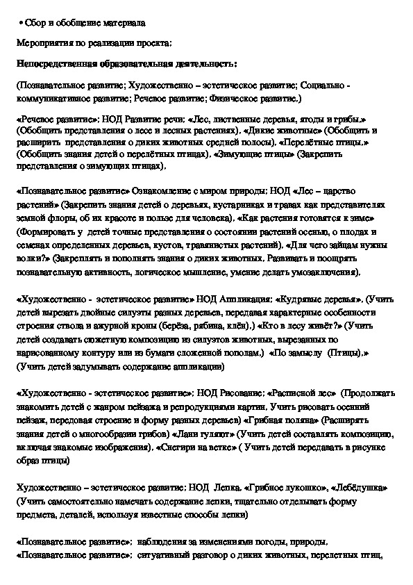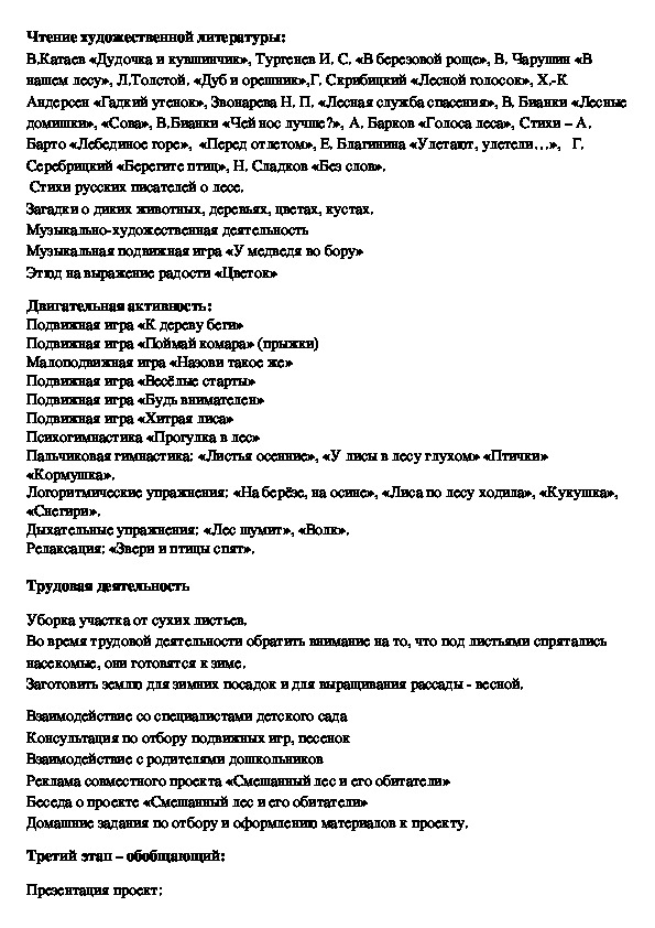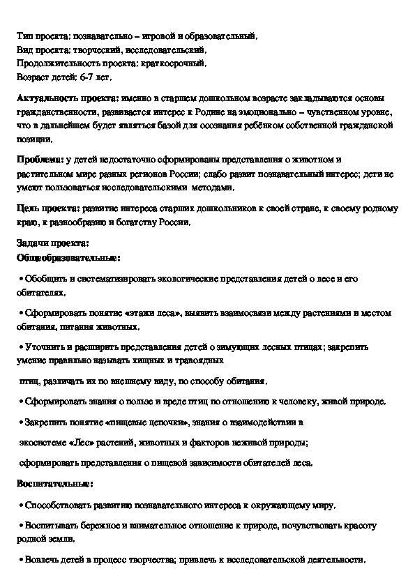 "Смешанный лес и его обитатели"Тип проекта: познавательно – игровой и образовательный.
