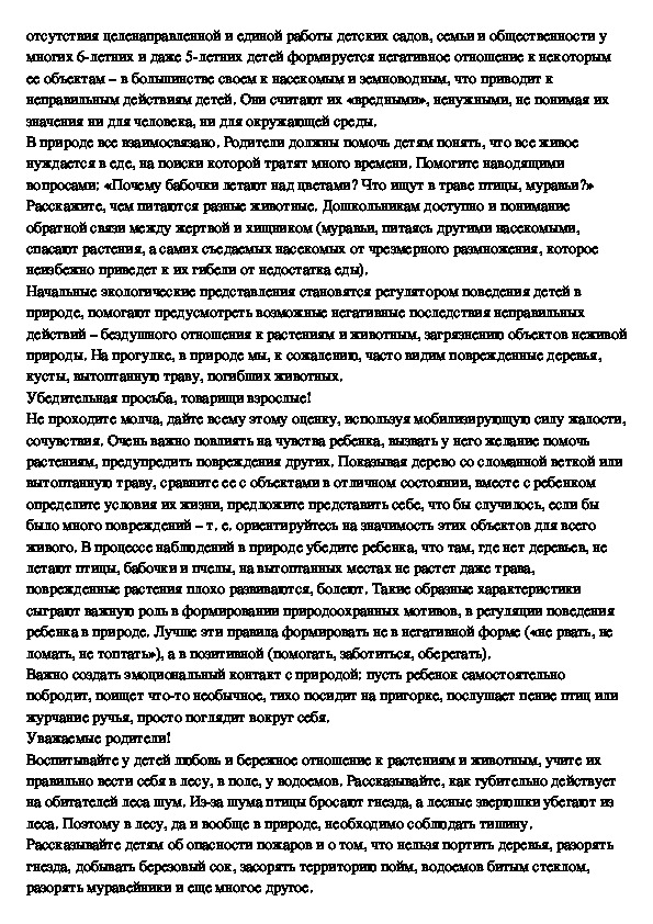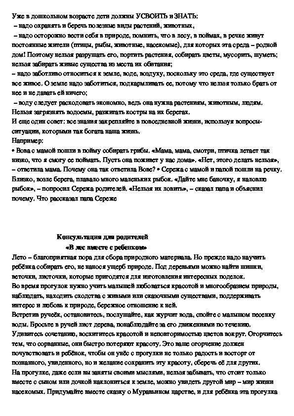 ребенка в природе. Лучше эти правила формировать не в негативной форме («не рвать, не