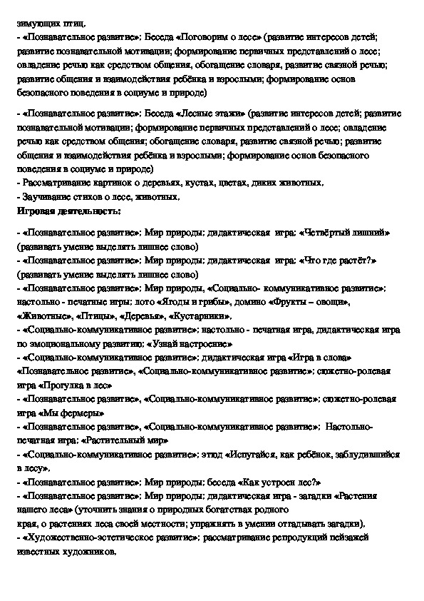 «Познавательное развитие» Ознакомление с миром природы: НОД «Лес – царство