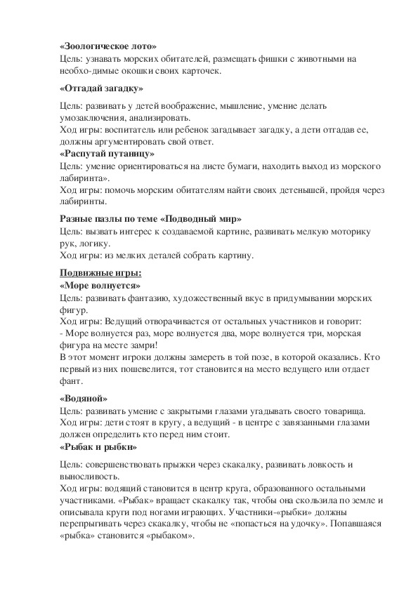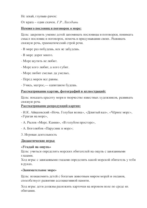 морем, с жизнью морских обитателей и обогатит представление ребенка о