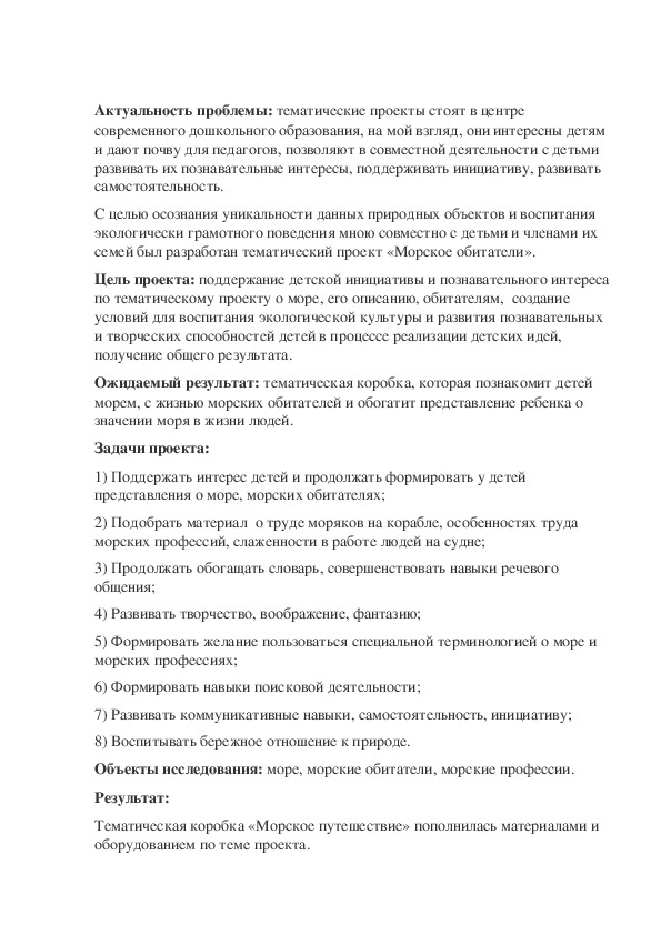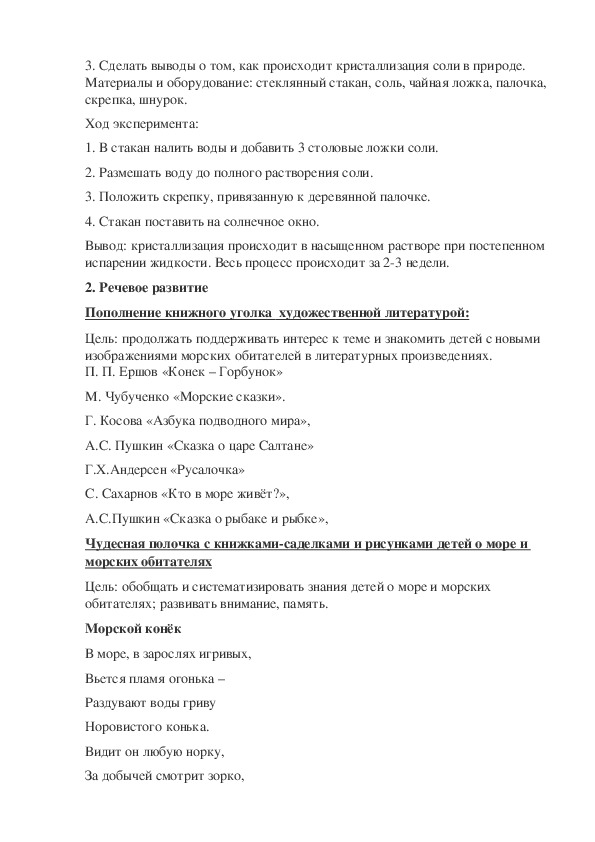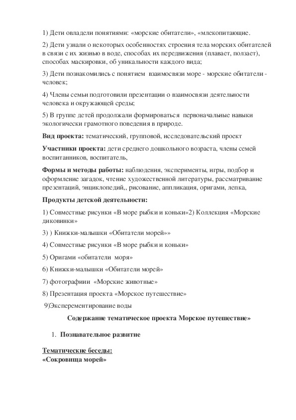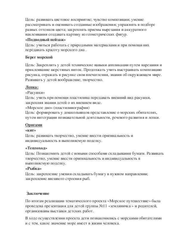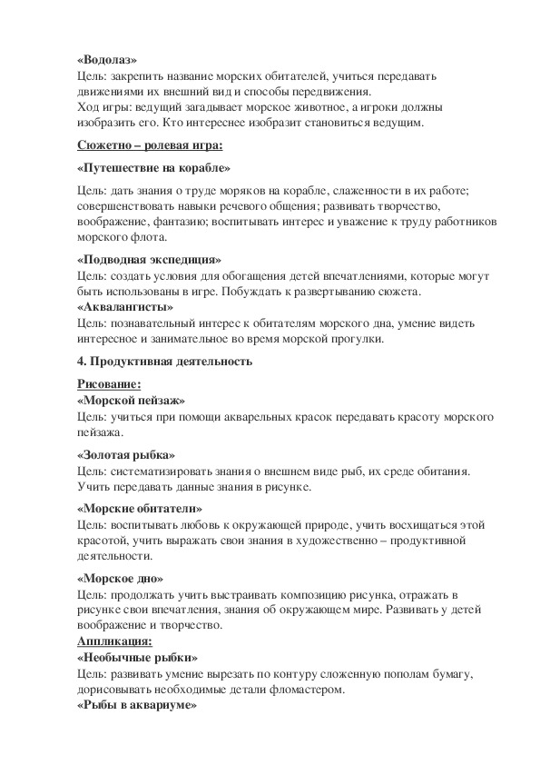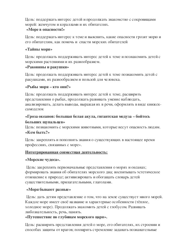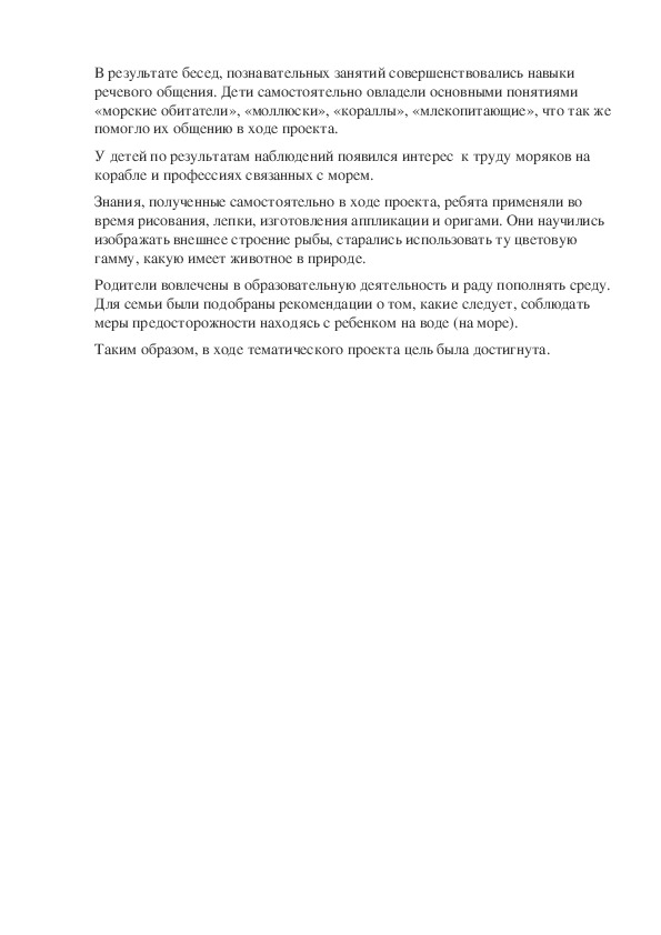 и с тем, какое значение море имеет в жизни человека.В результате бесед, познавательных занятий совершенствовались навыки
