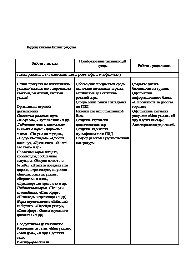 Конспект занятия аппликация «Дорожный знак»;Перспективный план работы