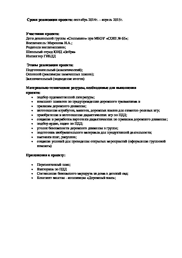 Учитывая особую значимость работы в данном направлении, нами был создан проект «Дорога без опасности» по теме: «Обучение старших дошкольников правилам безопасного поведения на дороге»