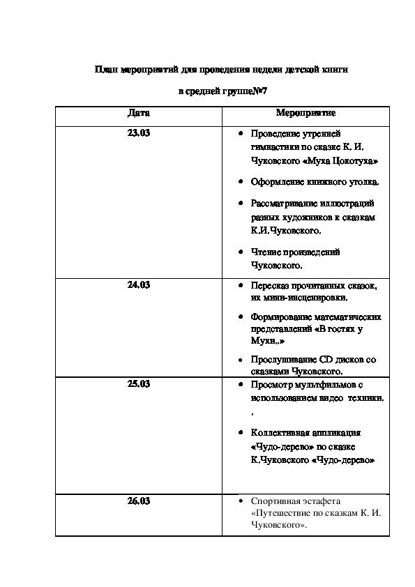 рисование иллюстраций к сказкам).План мероприятий для проведения недели детской книги
