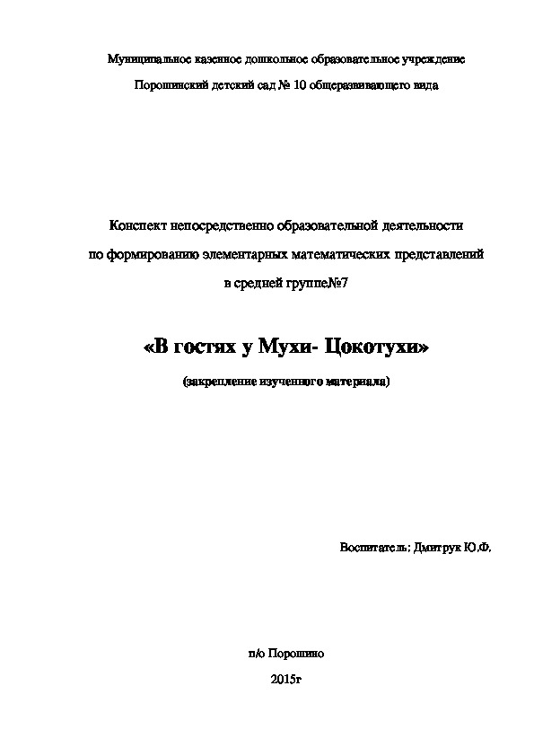 Муниципальное казенное дошкольное образовательное учреждение