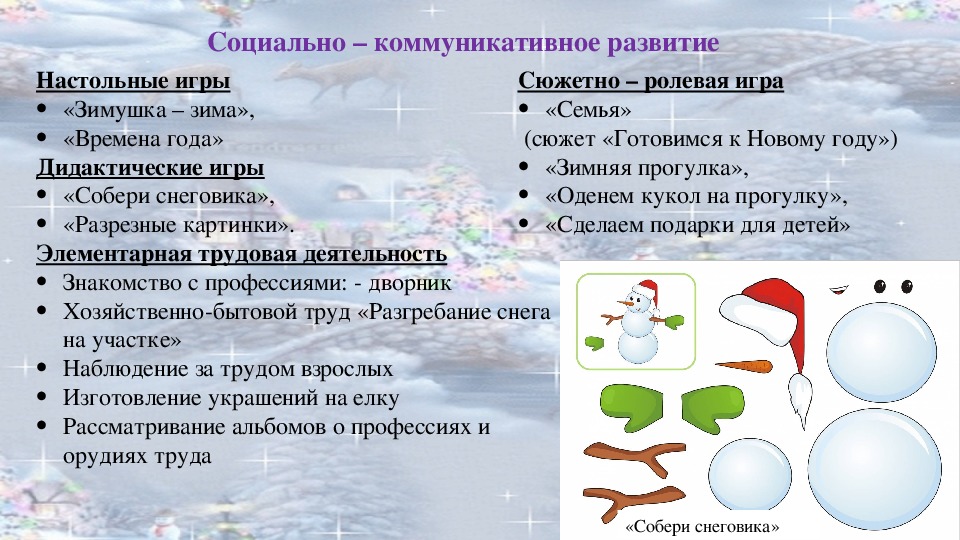 (раскраски), «Морозные узоры» (рисование свечкой), «Цветные снежинки», «Дом для