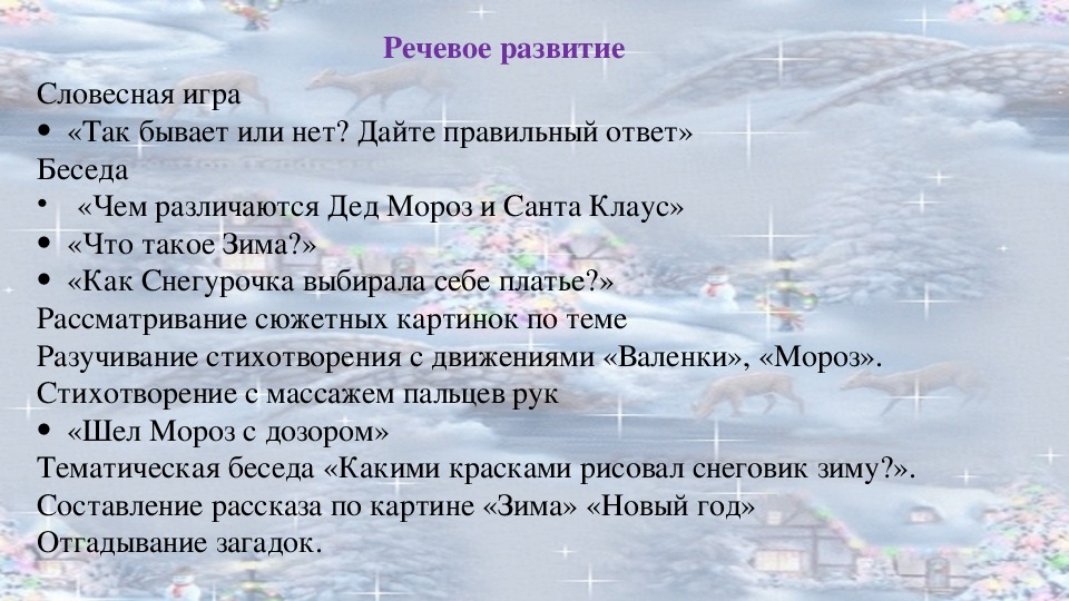 3. Прослушивание песен о «Зиме», «Дед Морозе».