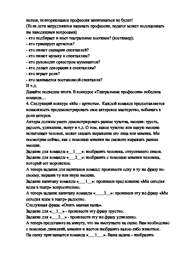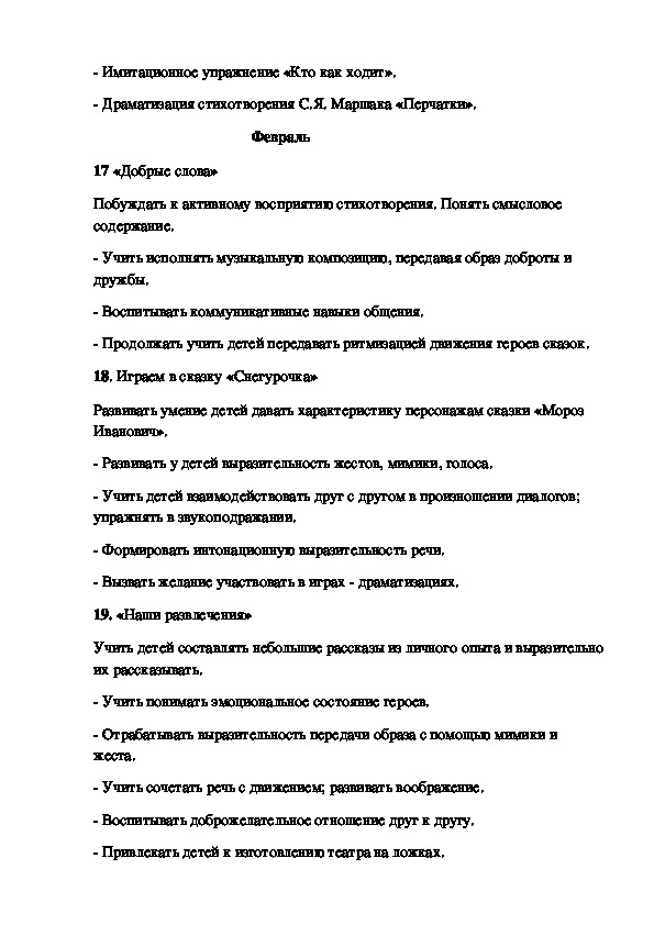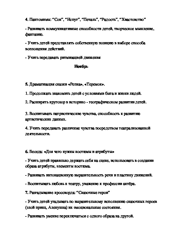 3. Сформировать у детей умение перевоплощаться в роли, импровизировать.