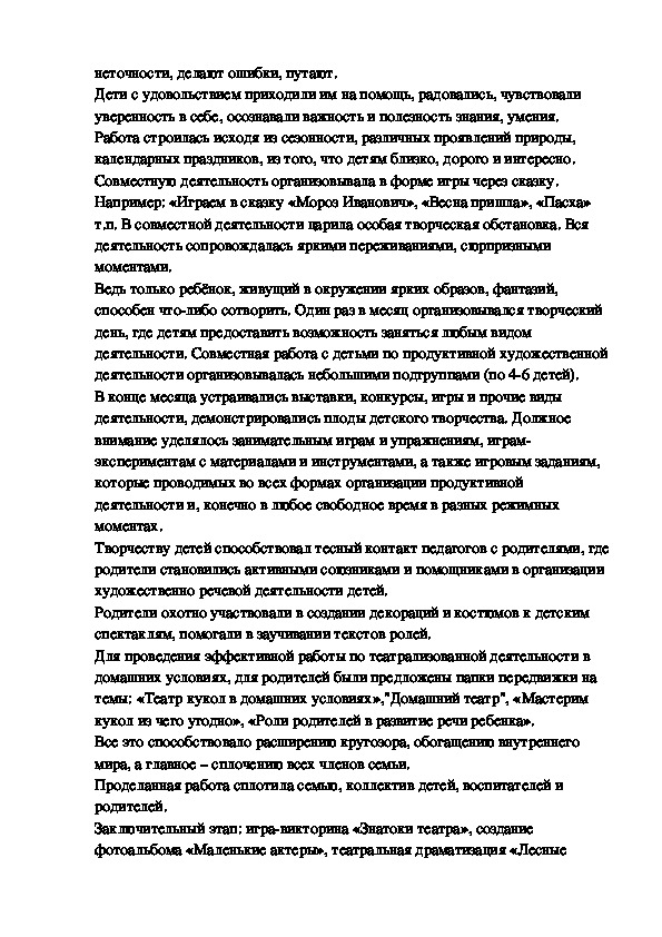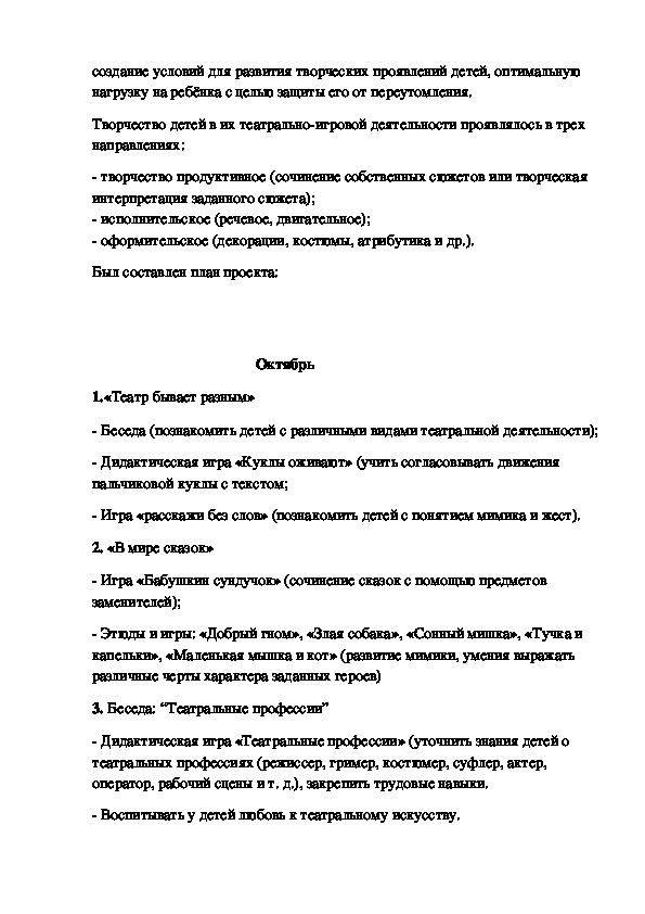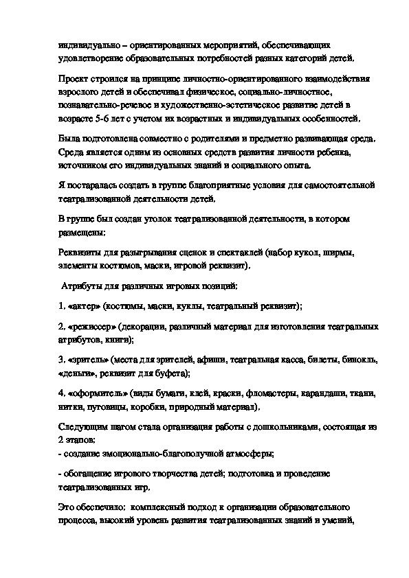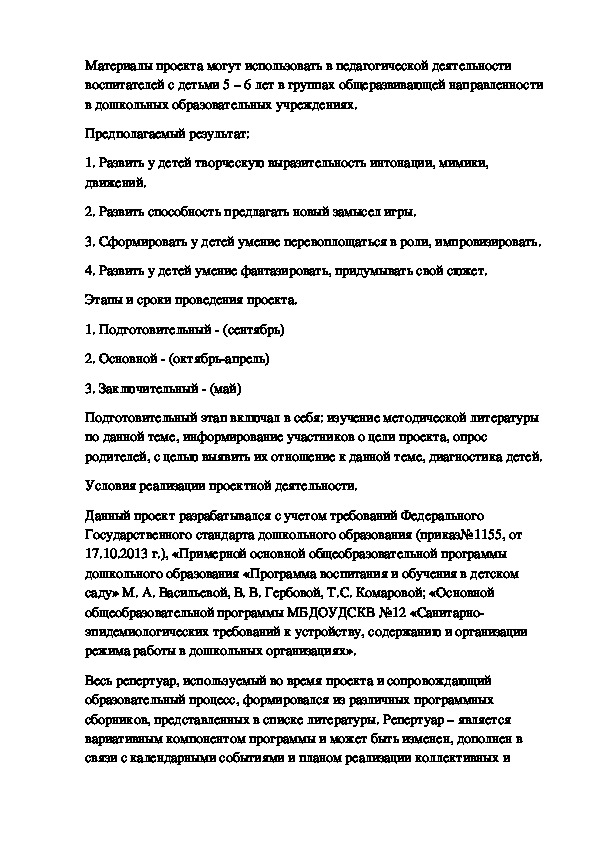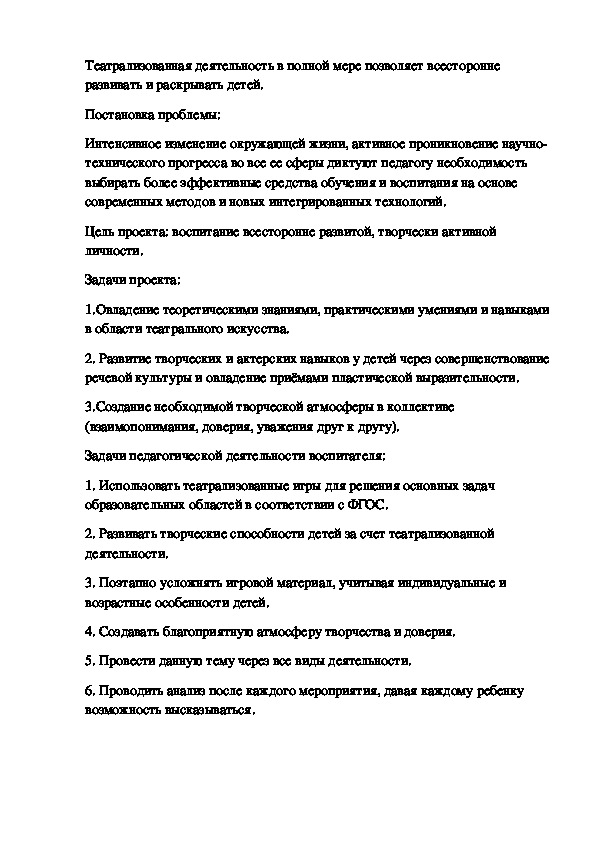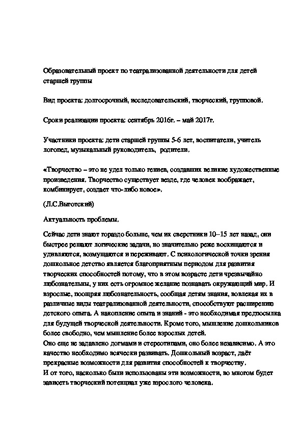 2016 2017 г.Образовательный проект по театрализованной деятельности для детей