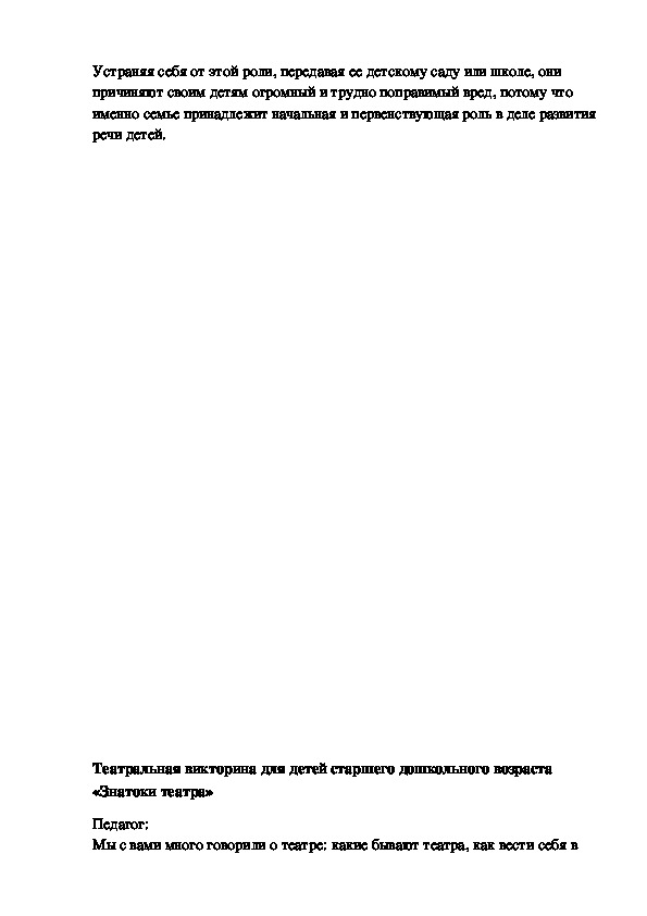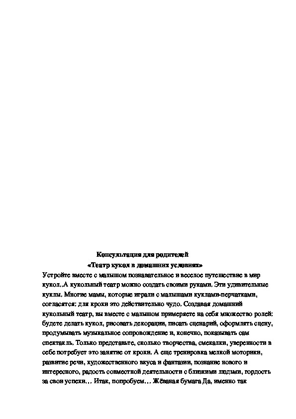 зависеть творческий потенциал уже взрослого человека.Театрализованная деятельность в полной мере позволяет всесторонне