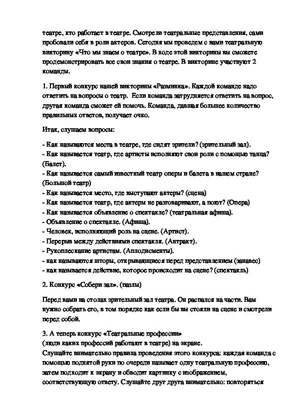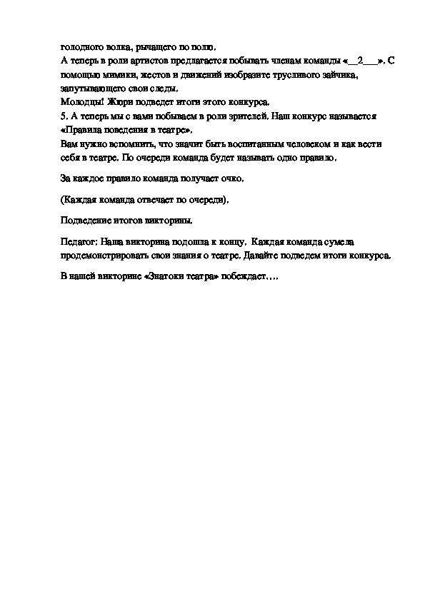 продемонстрировать свои знания о театре. Давайте подведем итоги конкурса.