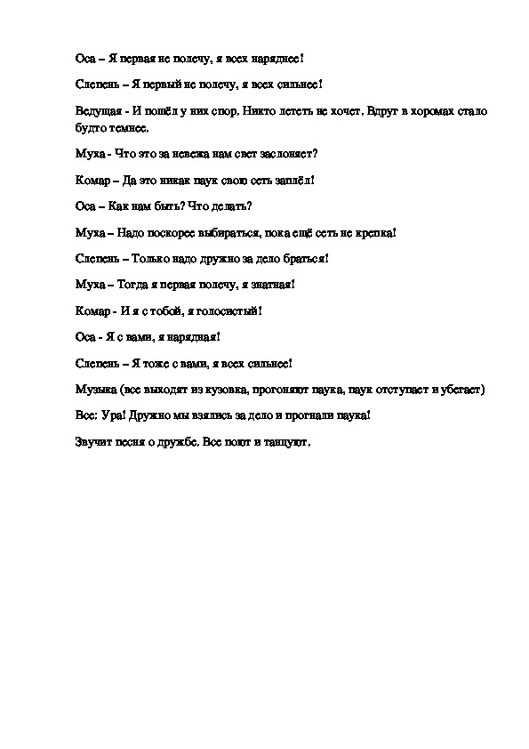 Все: Ура! Дружно мы взялись за дело и прогнали паука!