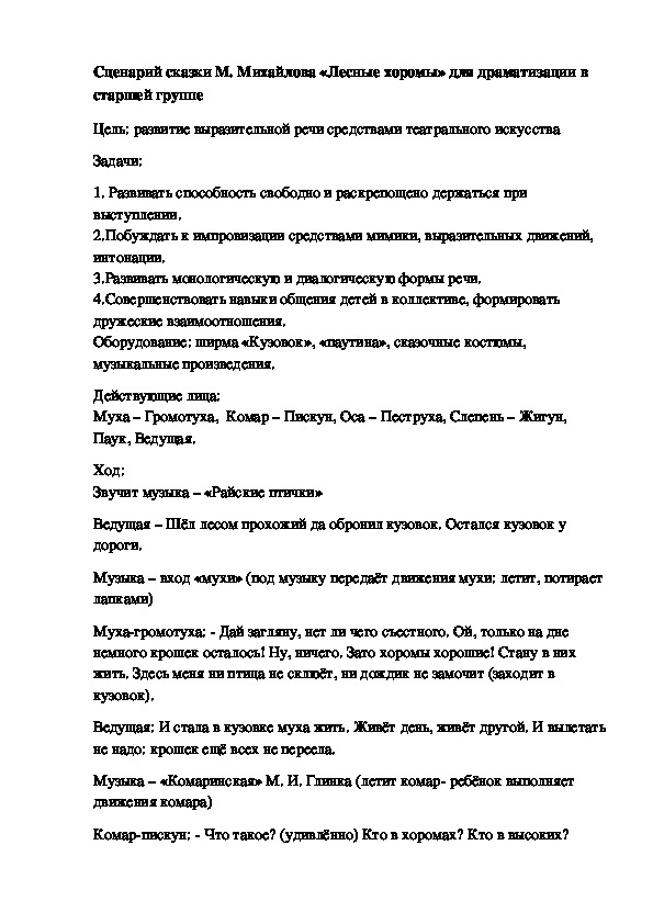 В нашей викторине «Знатоки театра» побеждает….Сценарий сказки М. Михайлова «Лесные хоромы» для драматизации в