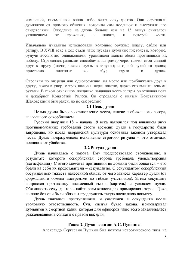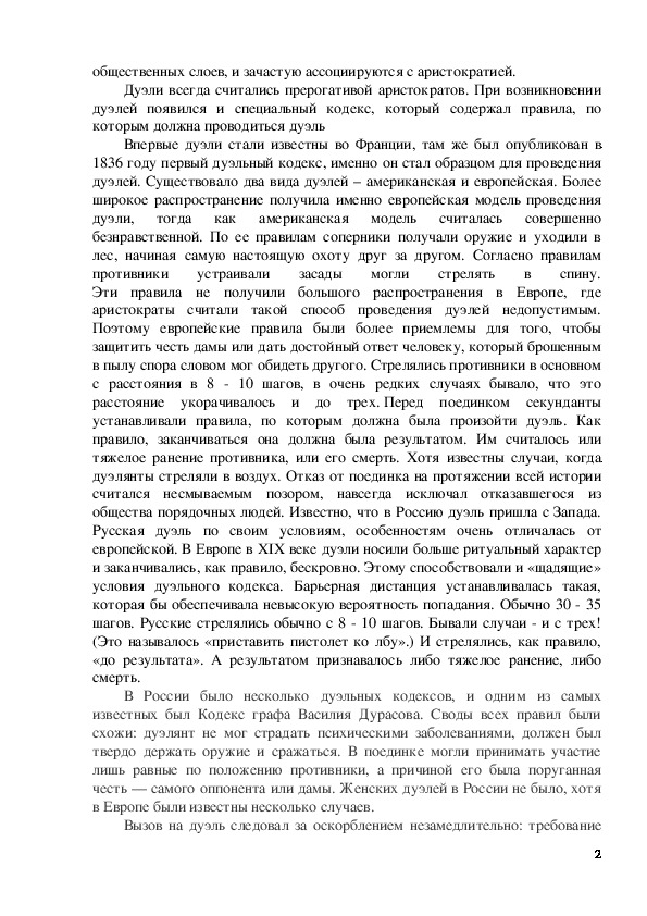 - ознакомиться с дуэльным кодексом и историей дуэли в России;