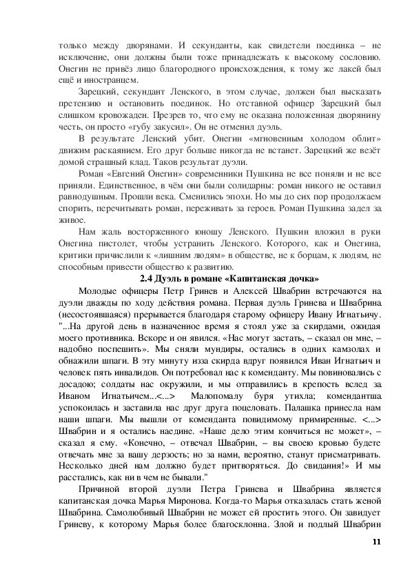2.4 Дуэль в романе «Капитанская дочка»…………………………18