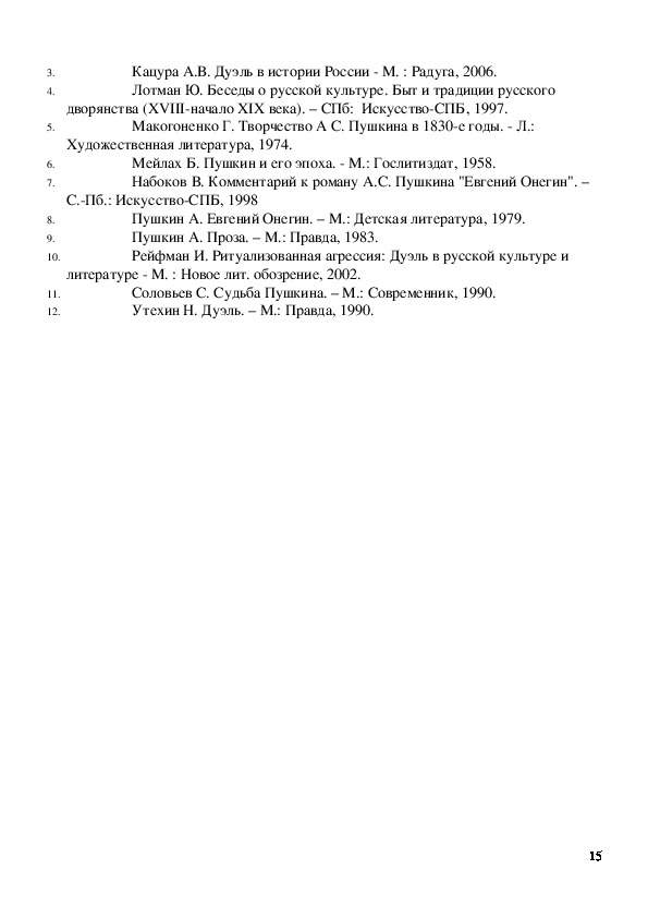 анализа. Так, мы предлагаем, изучив особенности дуэльного кодекса,