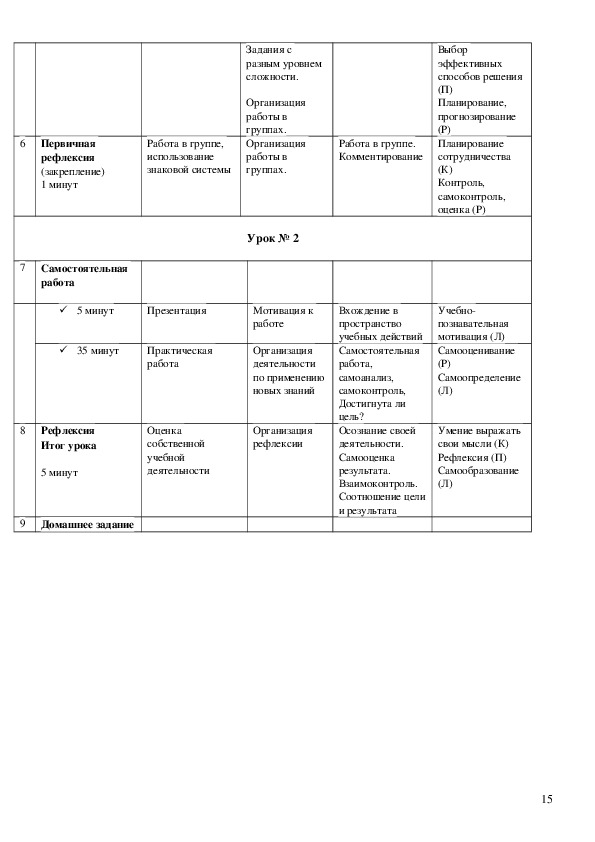 Формы: индивидуальная, фронтальная, групповая, самостоятельная работа.