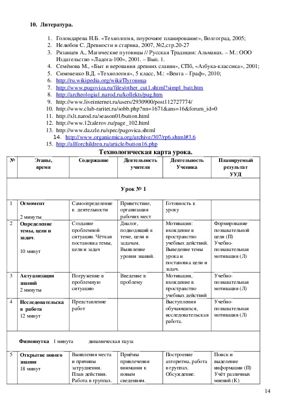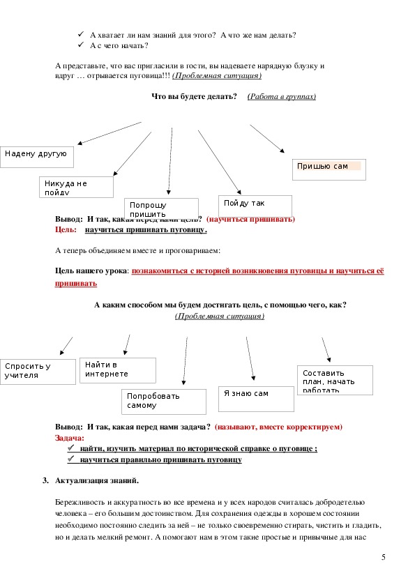 Номинация: «Сценарии современных уроков технологии, в том числе с