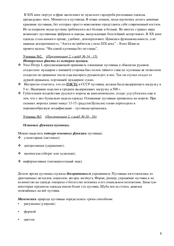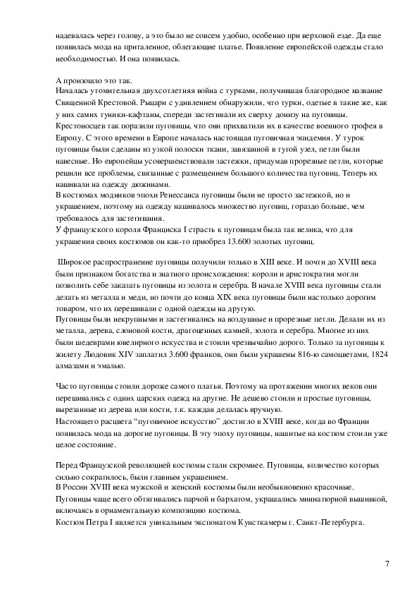 Цель: создание условий для изучения истории появления пуговицы, области её применения