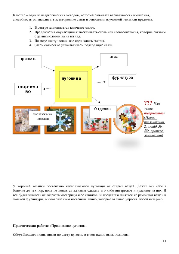Нагляднодемонстрационный материал, иллюстрации и изделия из пуговиц.