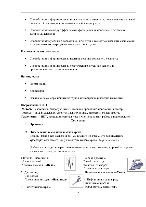 Технологии: ИКТ, исследовательская (частичнопоисковая), работа с информацией