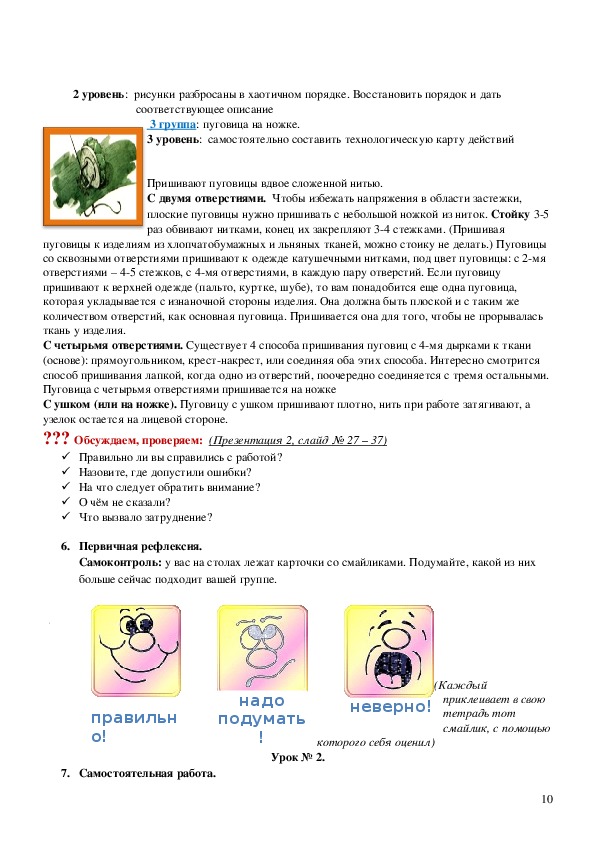 35. Каким способом прикрепляют пуговицы к изделию? «Способ