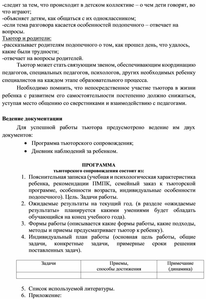 -возможные трудности (посторонний шум во время переговоров тьютора и подопечного), уходы с урока и возвращение, особенности характера и специфику поведенческих проявлений ребенка;