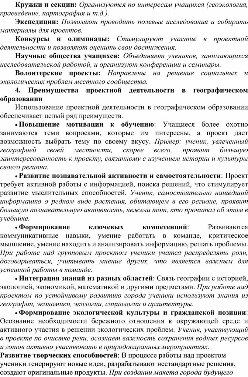 Использование проектной деятельности в географическом образовании обеспечивает целый ряд преимуществ.