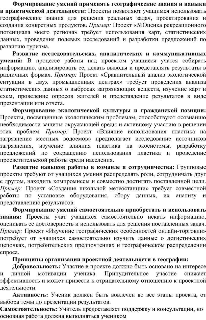 Принципы организации проектной деятельности в географии: