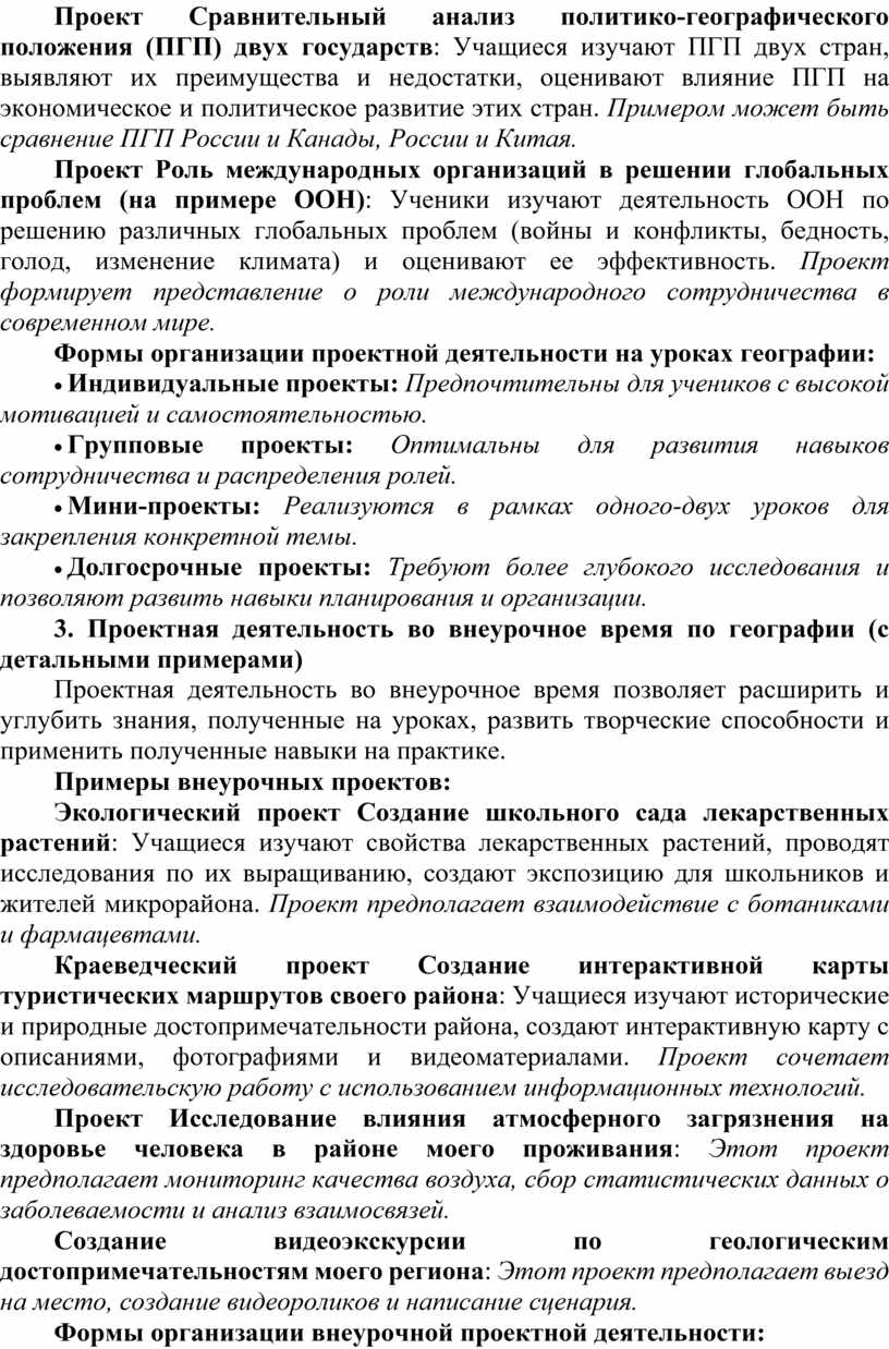 3. Проектная деятельность во внеурочное время по географии (с детальными примерами)