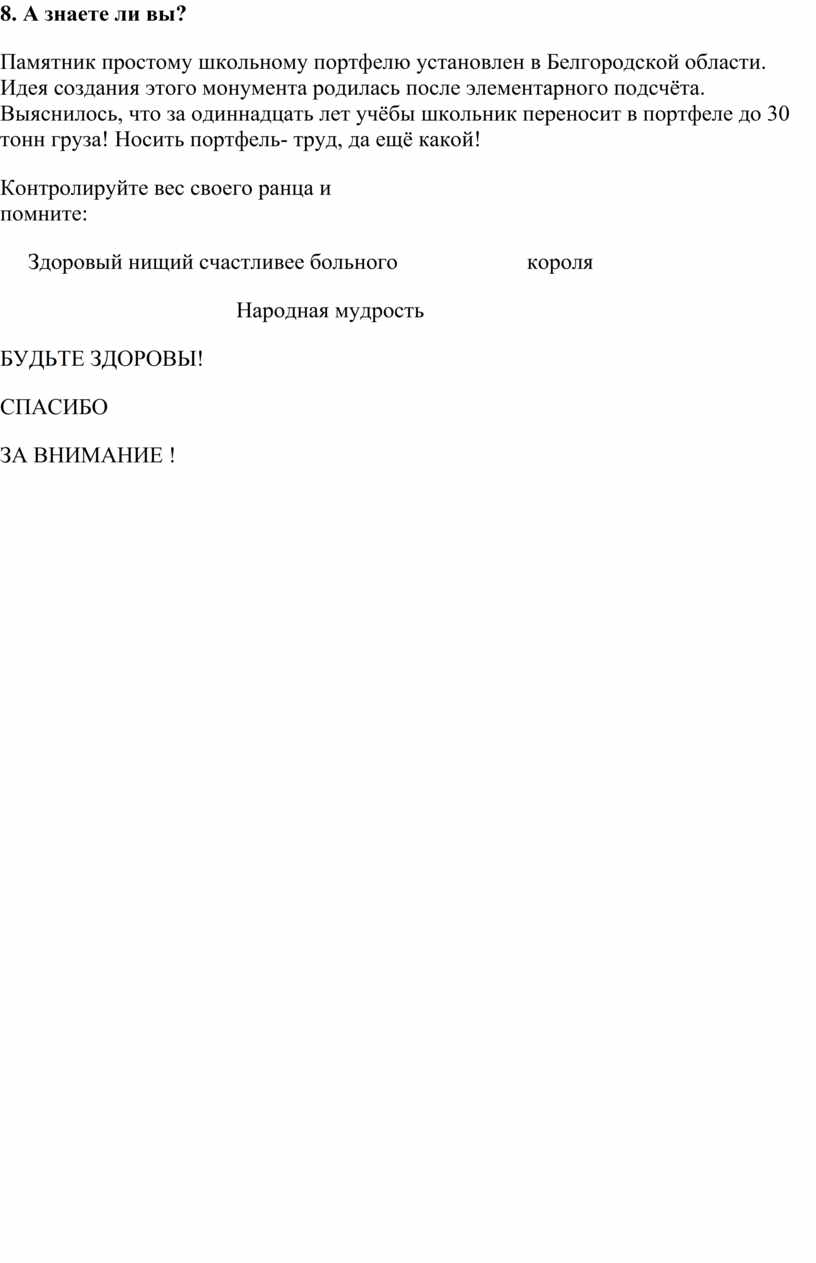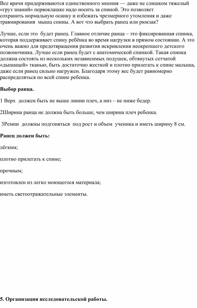 «Вес пустого ранца учащегося начальной школы не должен превышать 500 г»