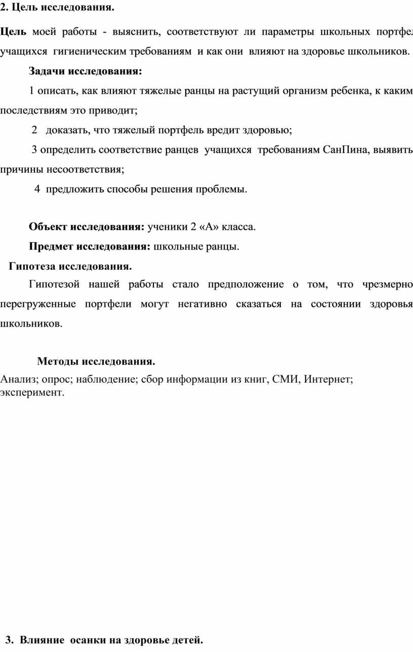 Гипотезой нашей работы стало предположение о том, что чрезмерно перегруженные портфели могут негативно сказаться на состоянии здоровья школьников.
