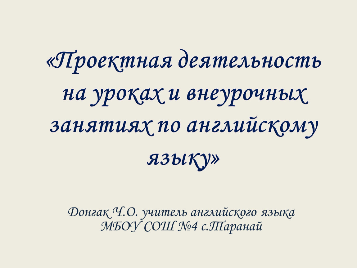 «Проектная деятельность на уроках и внеурочных занятиях по английскому языку»