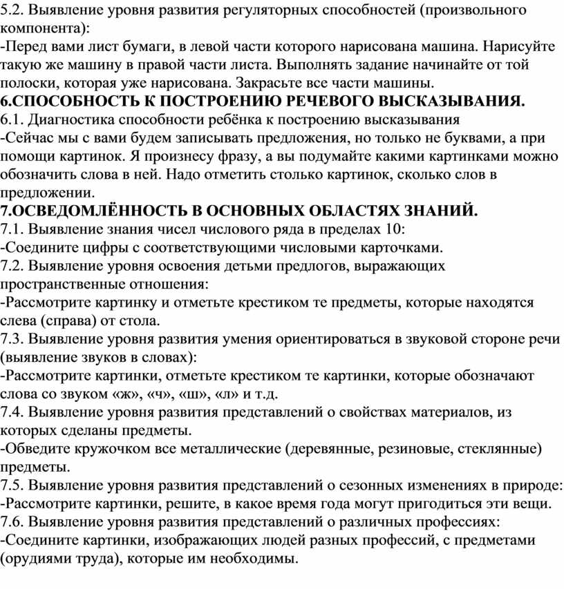 -Посмотрите внимательно на картинки. Отметьте ту, на которой дети ведут себя правильно. 5.2. Выявление уровня развития регуляторных способностей (произвольного компонента):