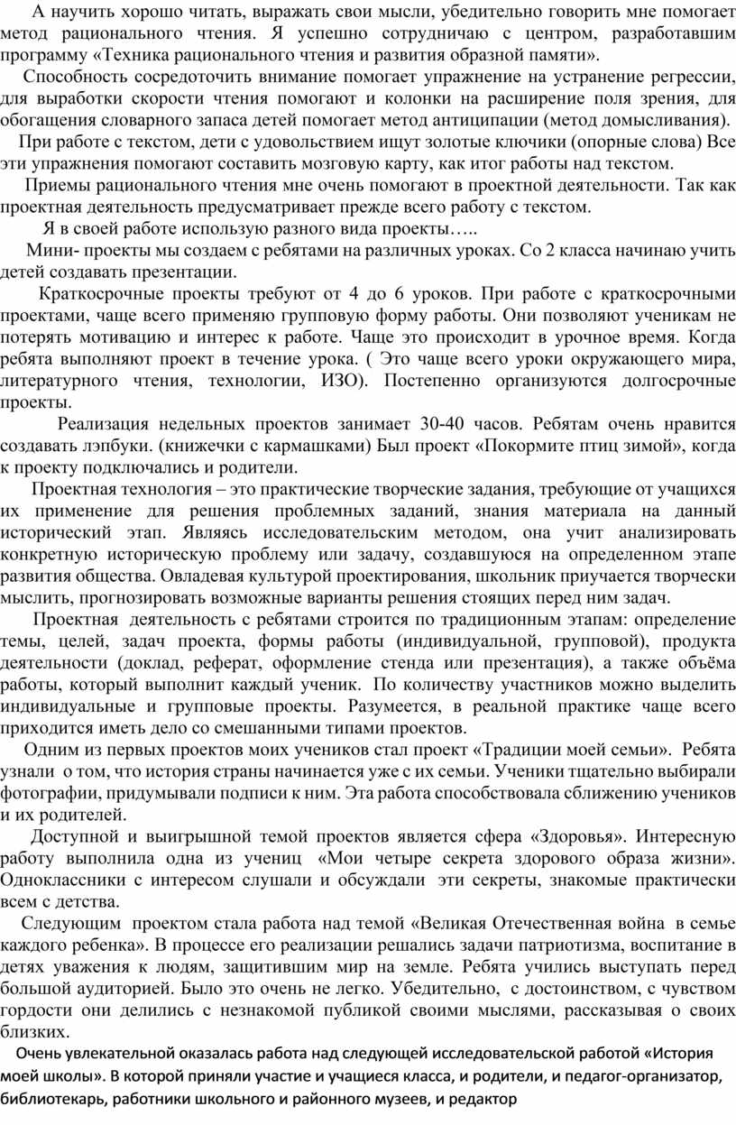 Приемы рационального чтения мне очень помогают в проектной деятельности. Так как проектная деятельность предусматривает прежде всего работу с текстом.