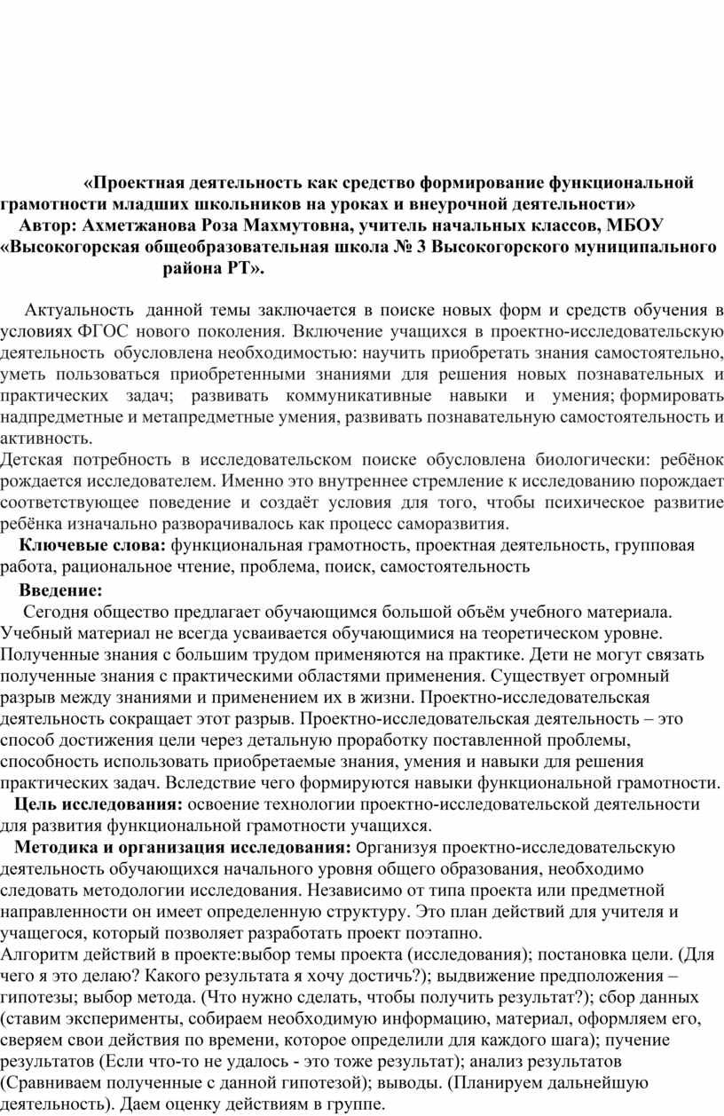 К одному из эффективных методов формирования функциональной грамотности я отношу проектную деятельность.